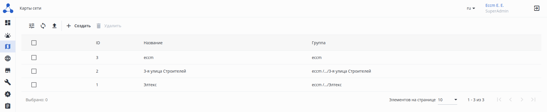 Для создания новой карты сети нажмите кнопку "Создать" в разделе "Карты сети". Откроется редактор карты сети.
