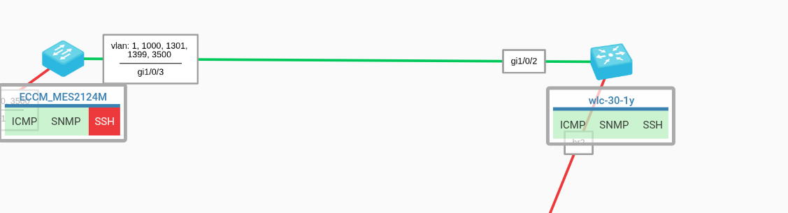 При условиях, что у добавленных в рамках одной группы устройств включен LLDP и сервисы ECCM успели опросить данные устройства по SNMP, LLDP связи между устройствами на карте будут отрисованы автоматически вместе с выбором интерфейсов для связи.