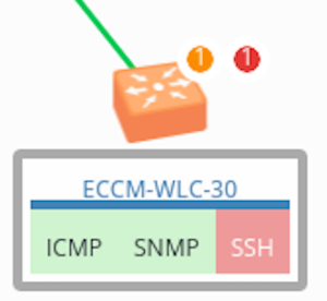2. Информация об устройстве — отображает имя устройства (в качестве имени устройства используется имя хоста), количество обнаруженных проблем и информацию о его статусах доступности по протоколам ICMP, SNMP и SSH;