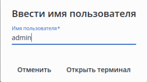 • Другой пользователь — откроется окно, в котором необходимо ввести имя пользователя (после открытия терминала необходимо ввести пароль):