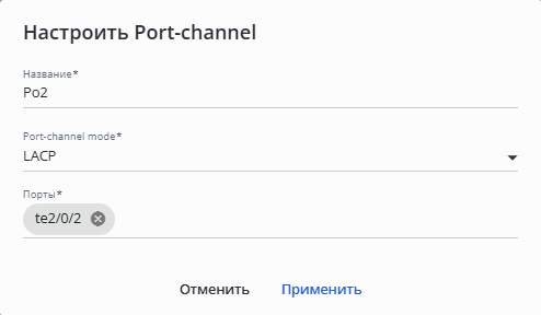 3. Кнопка "Настроить Port-channel";