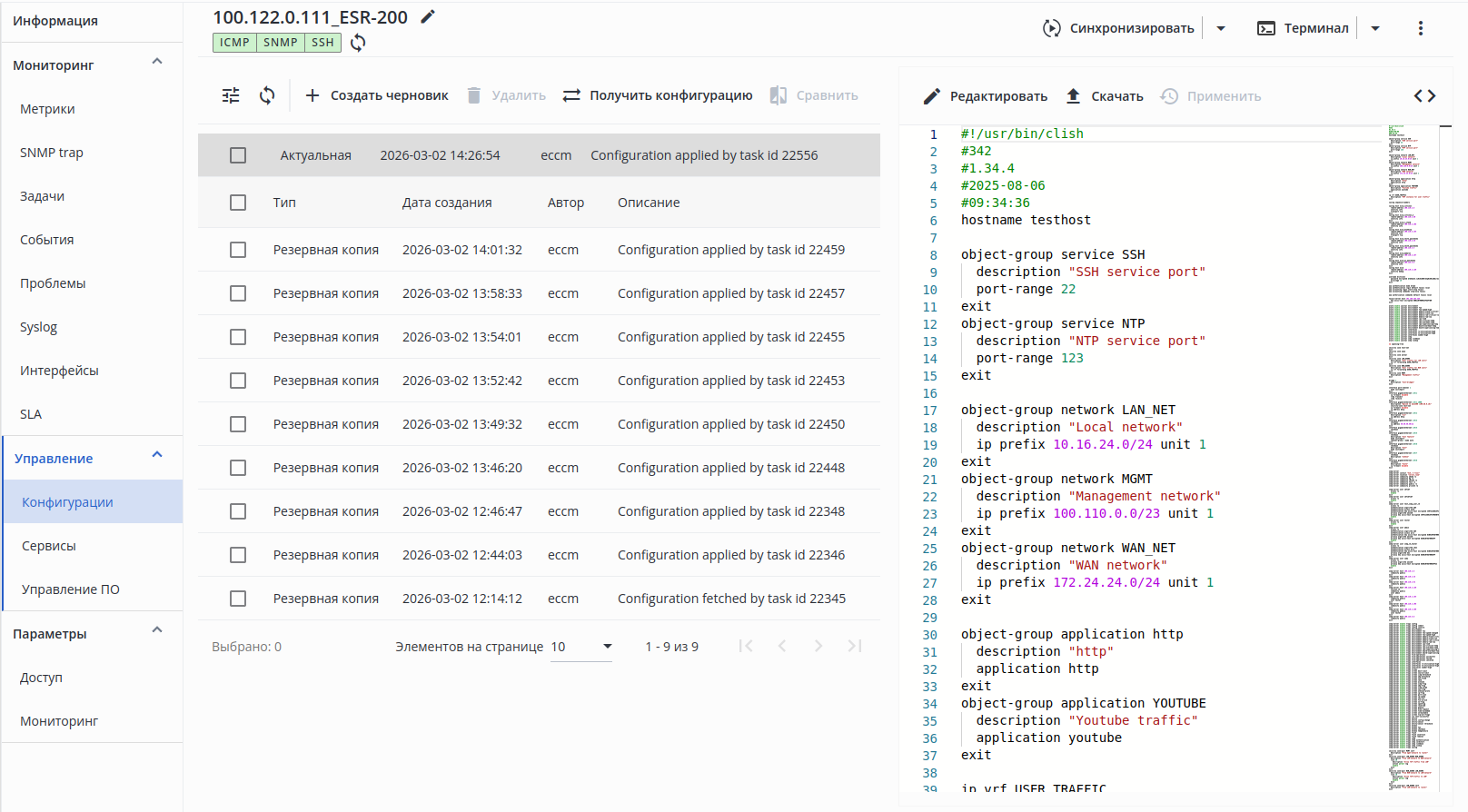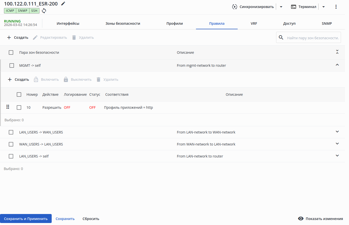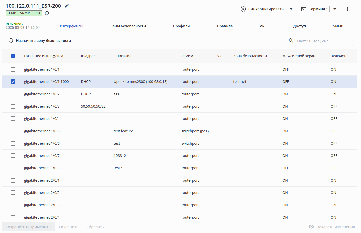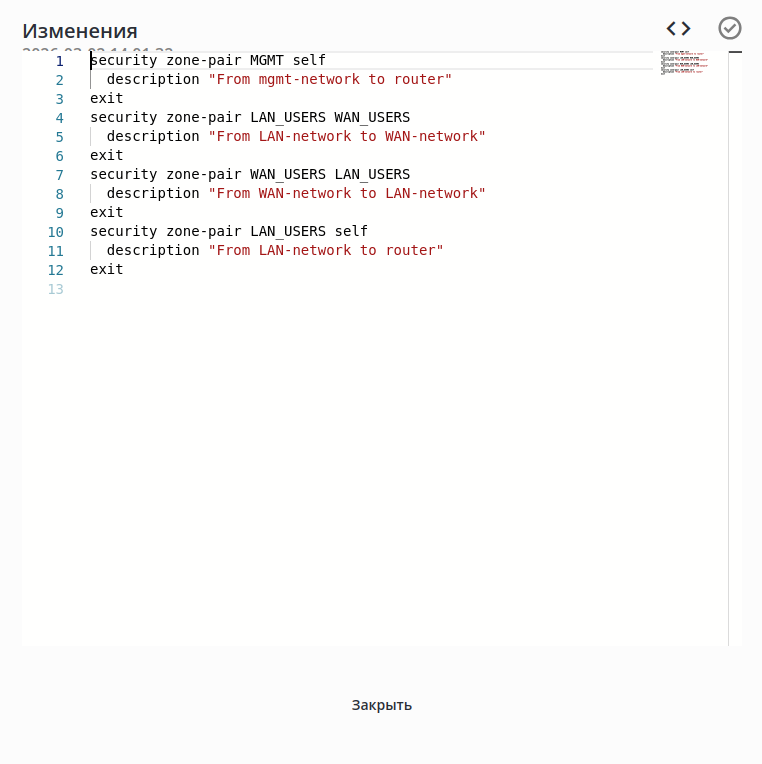 • включено — при изменении настроек группы интерфейсов;