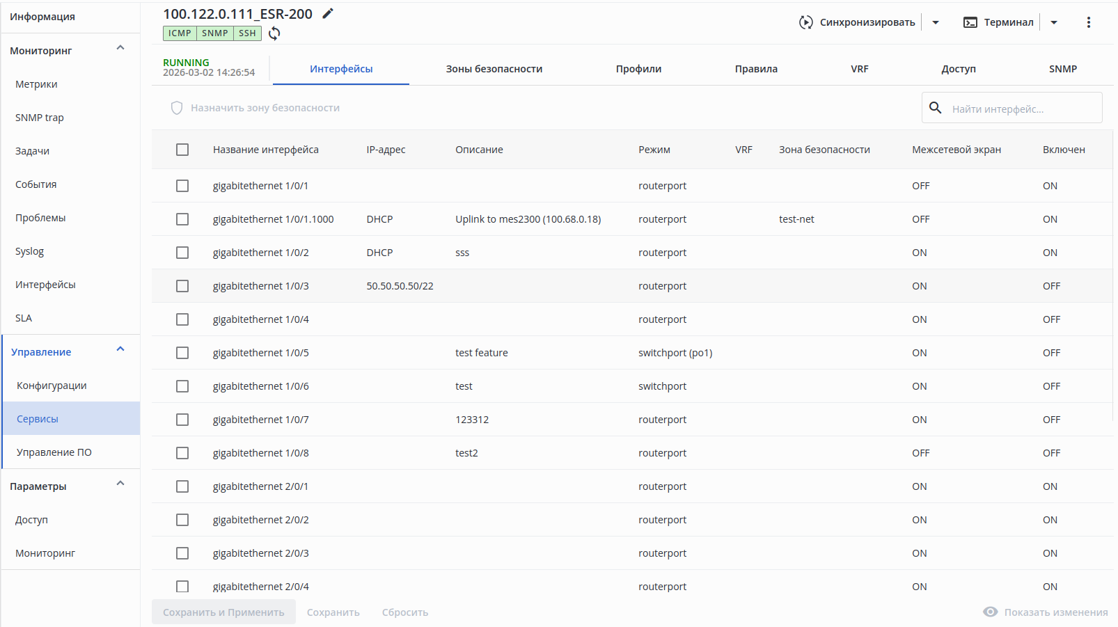 • отключено — при изменении настроек группы интерфейсов;