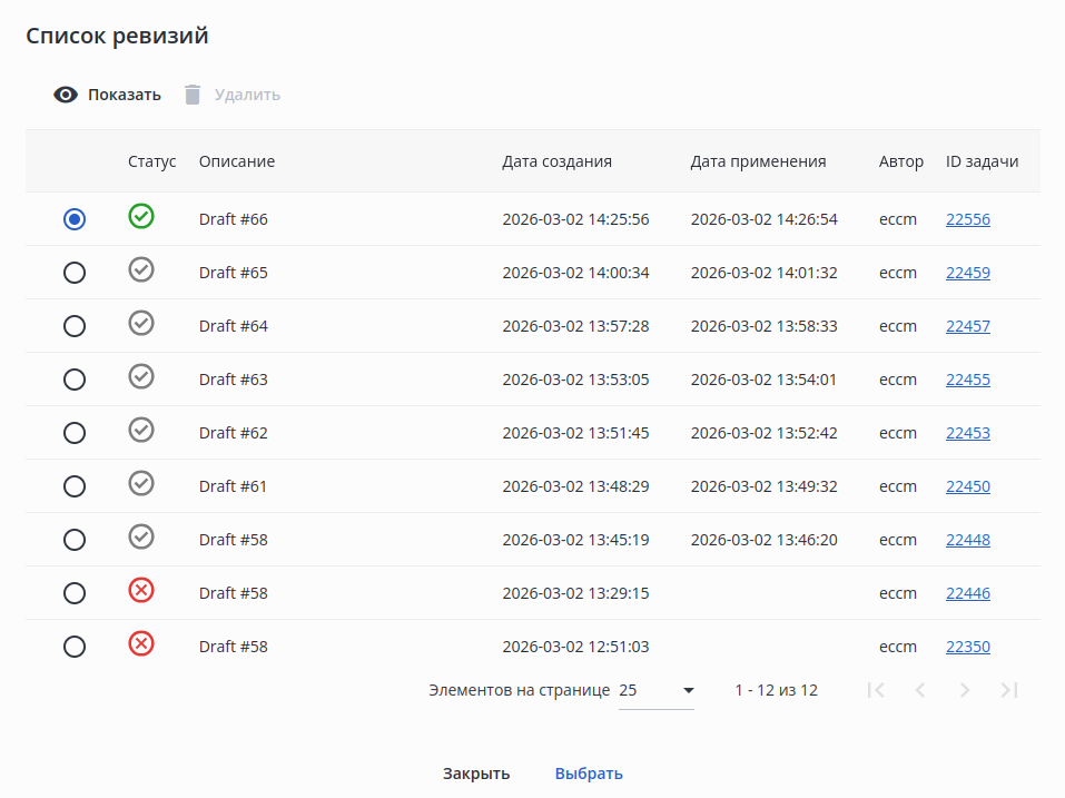 Для создания задачи на переключение ПО нажмите кнопку "Переключить".