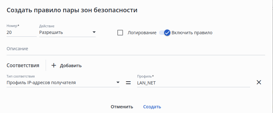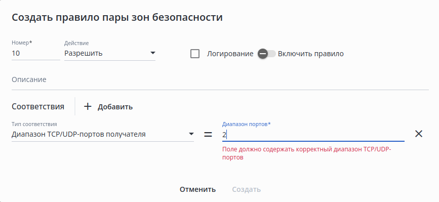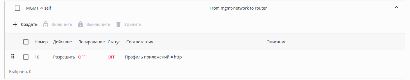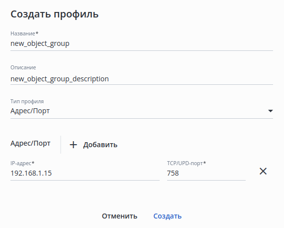 • отсутствует — при изменении настроек группы интерфейсов;