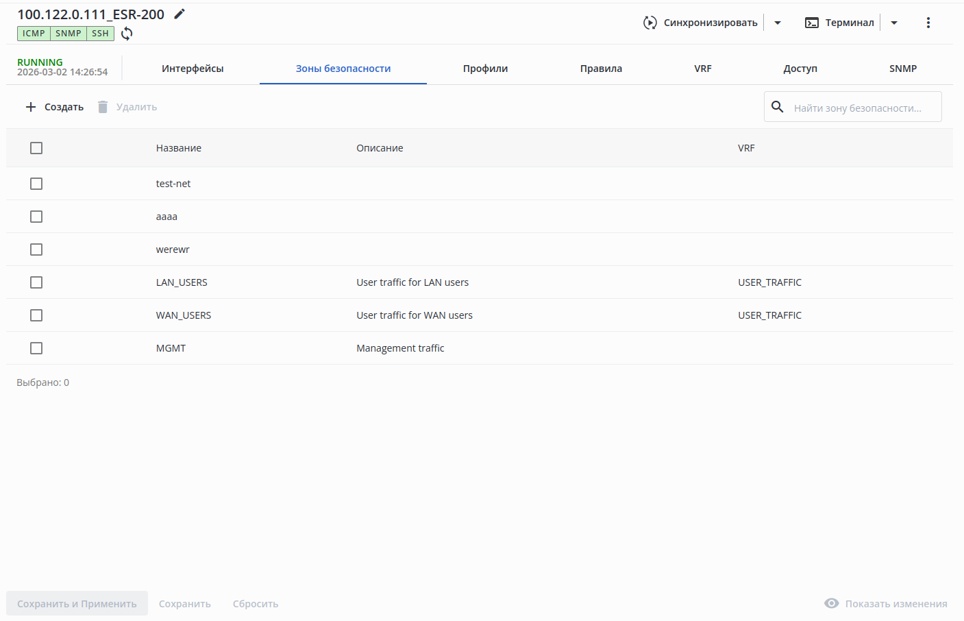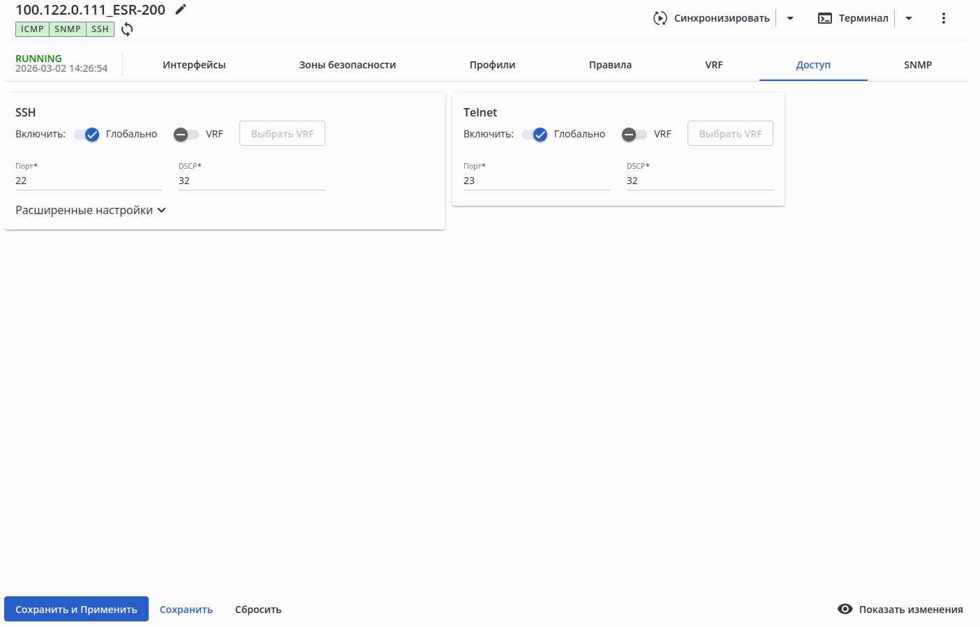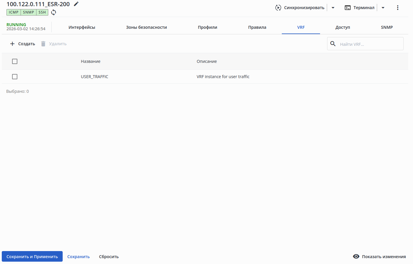 Если в поле "VRF" было установлено значение, то IP-адрес для отправки SNMP trap также должен входить в указанный VRF.