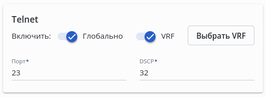 • Включено — переключатель, позволяющий изменить административный статус интерфейса. Настройка доступна при включенном флаге "Настроить административный статус". Значение по умолчанию: