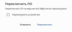 При активации флага "Перезагрузить устройство" перезагрузка будет выполнена сразу после завершения переключения образа ПО. Если флаг неактивен, операцию по перезагрузке устройства необходимо будет выполнить самостоятельно.