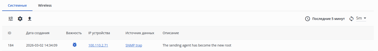 1. GENERIC-устройство отправило соответствующий SNMP-трап — он должен отображаться в журнале трапов;