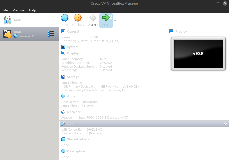 Для установки и функционирования vESR установленная версия VirtualBox должна быть не ниже 6.0.