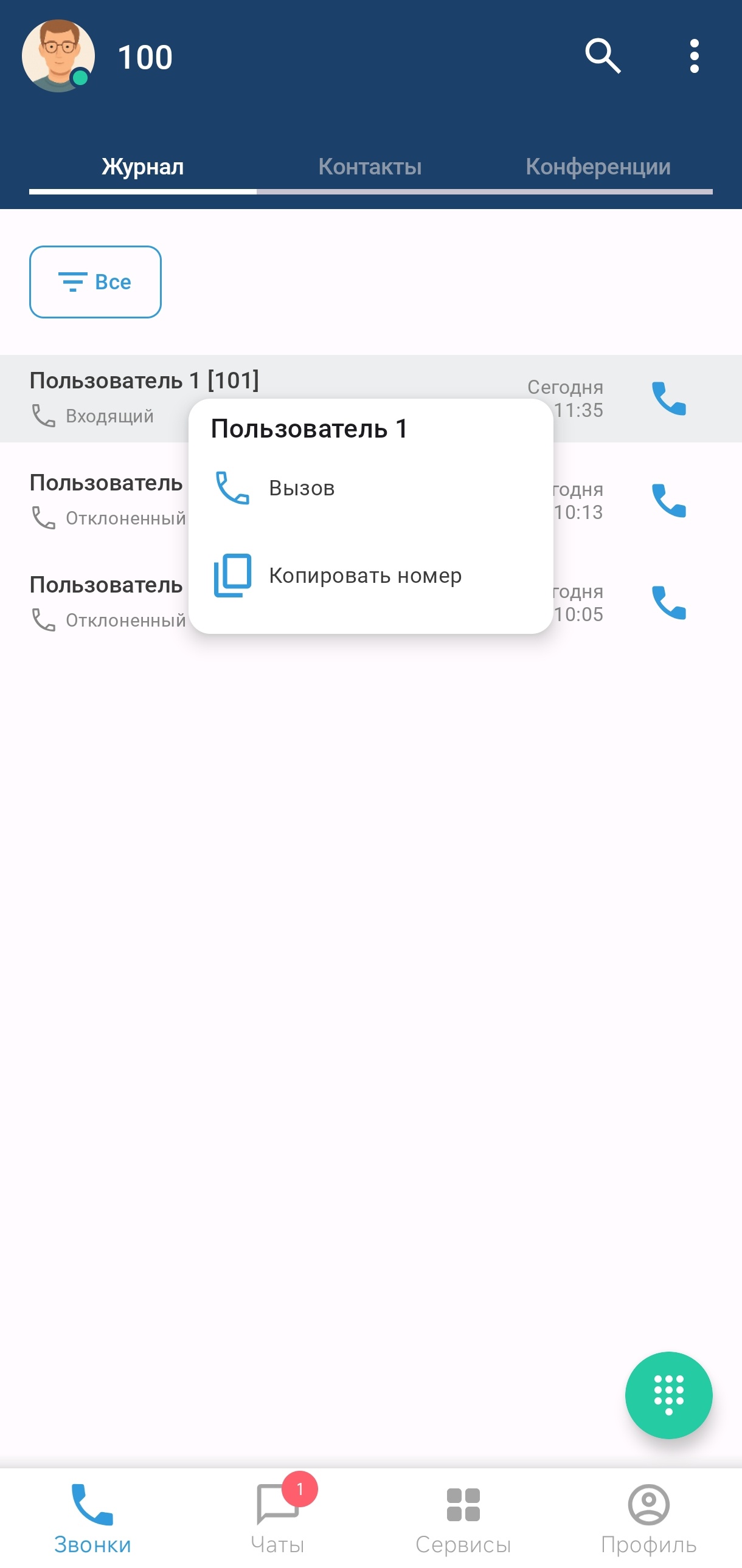 Во вкладке «Журнал» отображается история входящих и исходящих вызовов, совершенных пользователем, а также пропущенных вызовов. В том числе отображаются вызовы, совершенные на других устройствах.