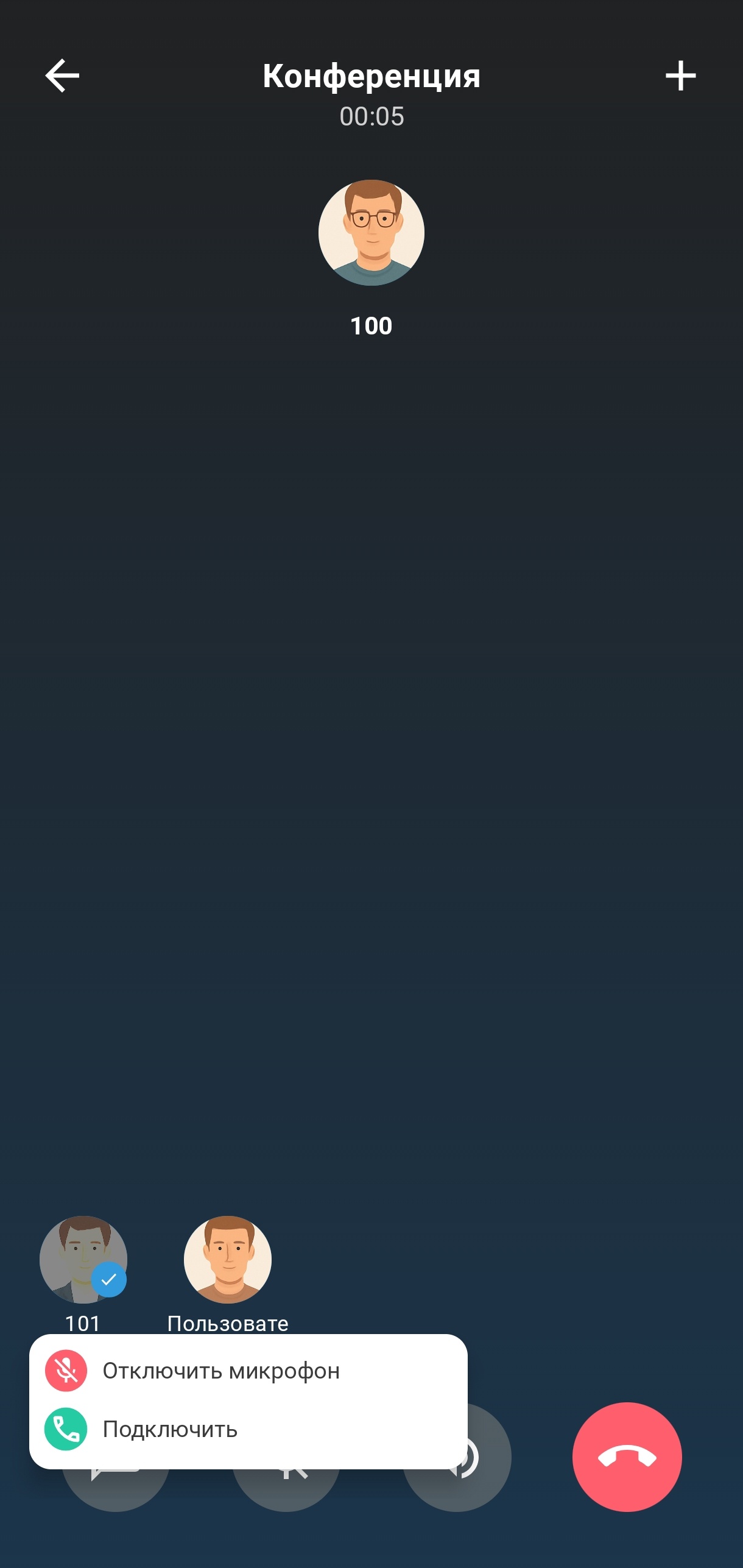 В групповом чате или суперчате нажатие на эту кнопку приведет к открытию интерфейса создания конференции (см. раздел «Конференции»).