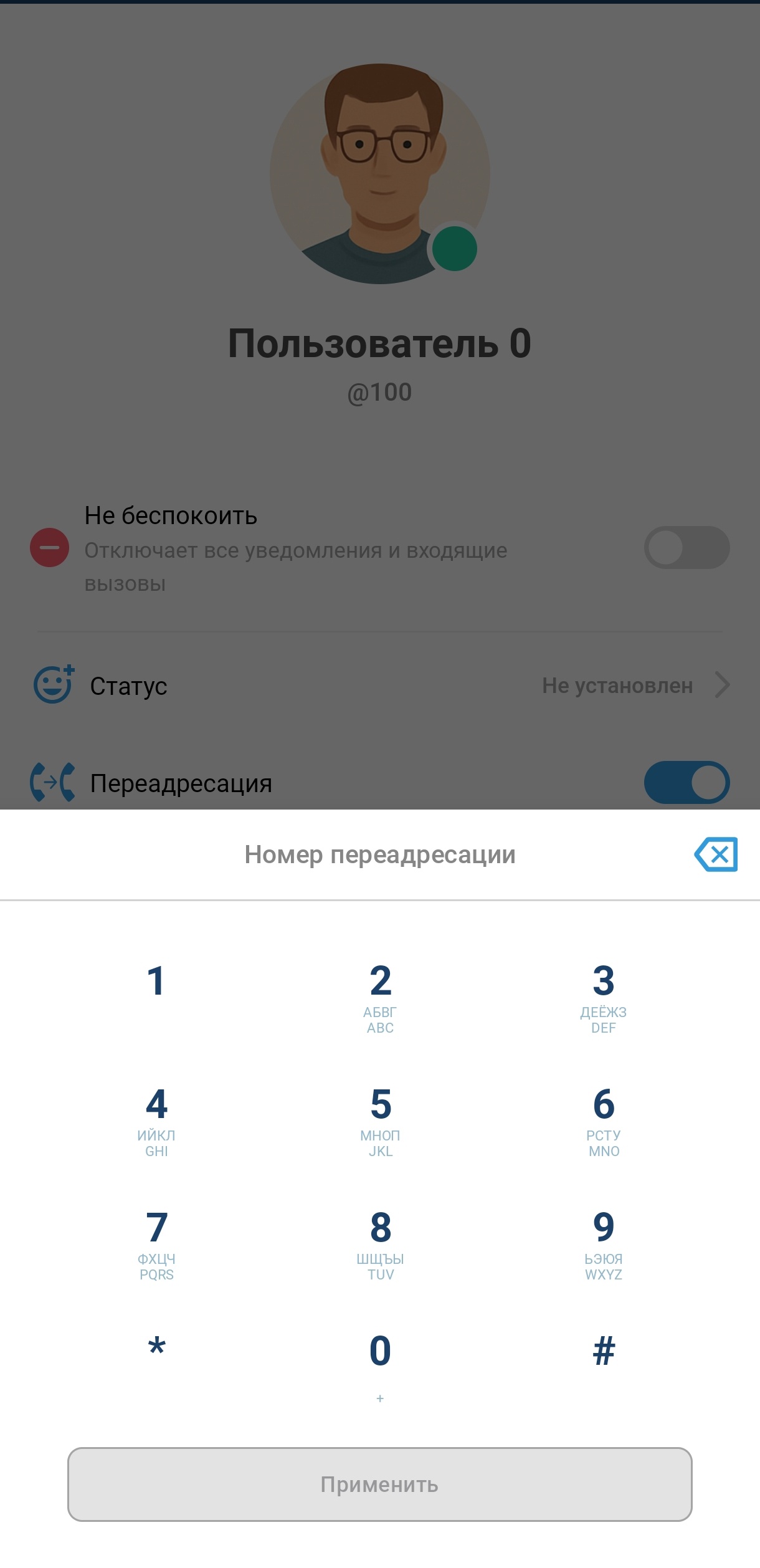 Режим «Не беспокоить» отключает все уведомления от приложения и отбивает входящие звонки.