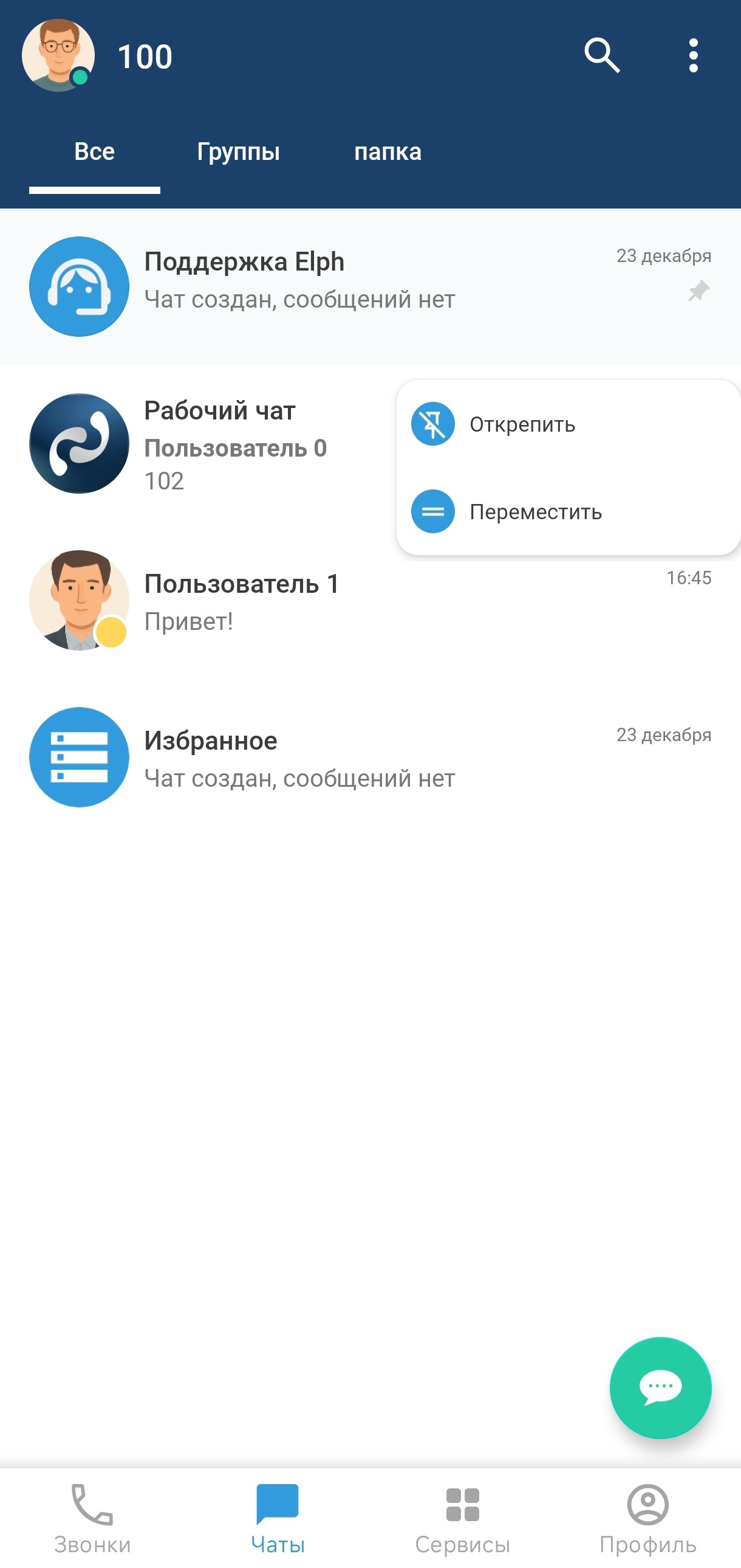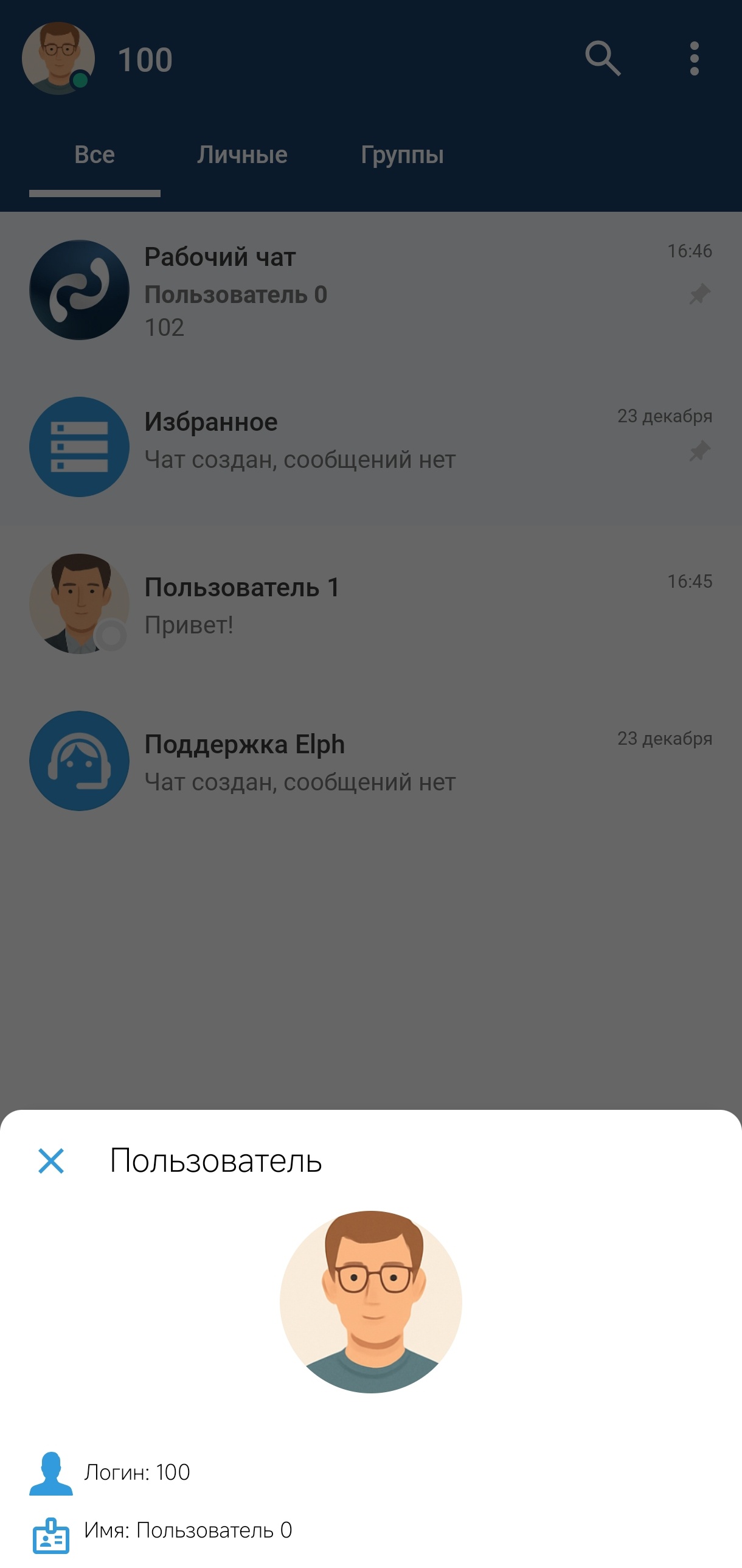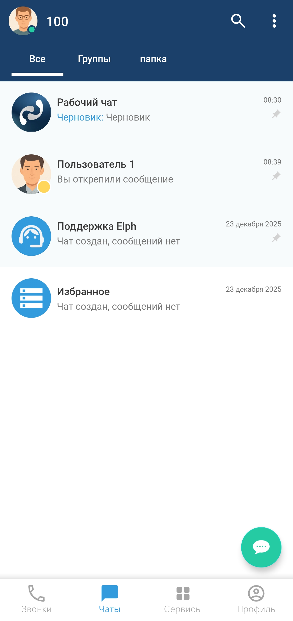 Для быстрой связи с администратором существует чат «Поддержка Elph». Этот чат находится среди всех остальных чатов в общем списке чатов, а также в выпадающем меню (см. раздел «Интерфейс главного экрана чатов»).