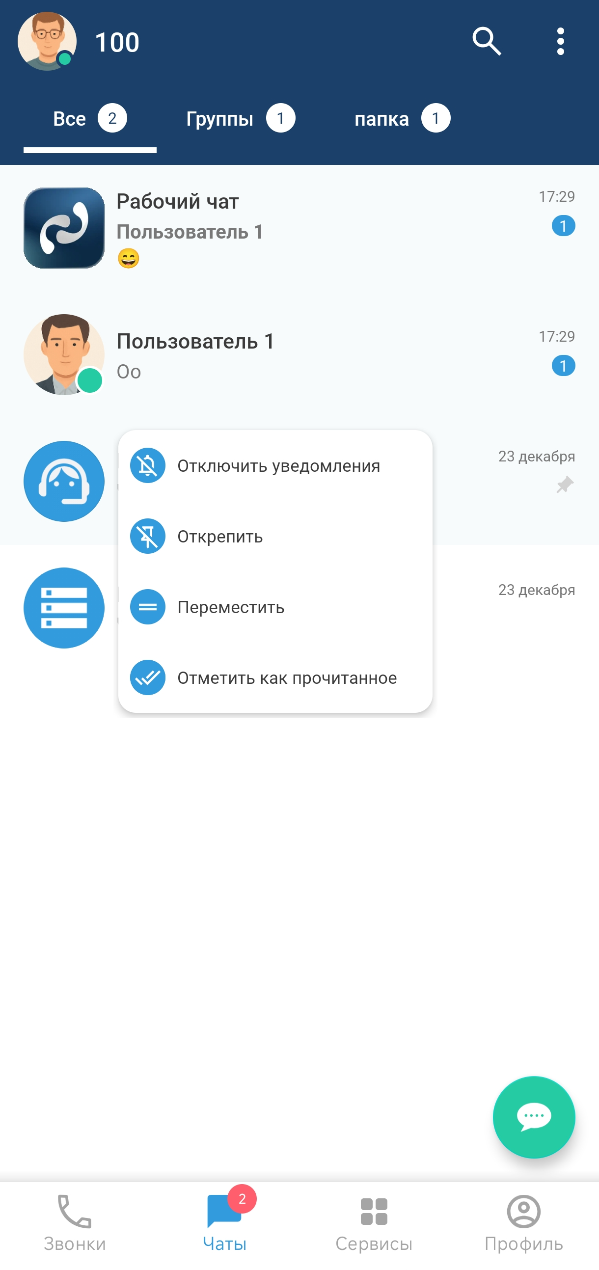 2. Вызовите контекстное меню чата длительным нажатием;