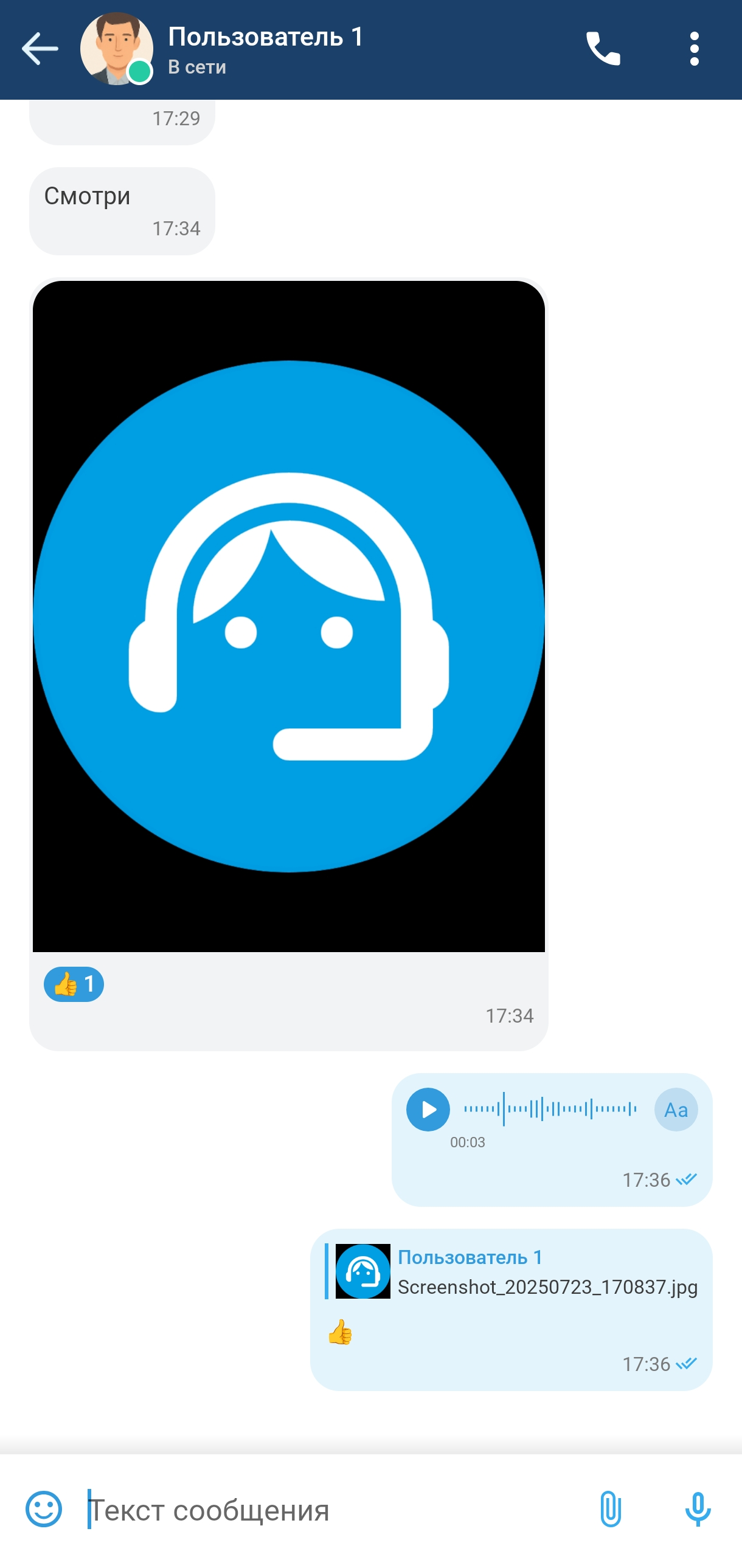 Для просмотра файла его необходимо сначала загрузить. Нажмите на файл в списке сообщений для его загрузки, а после окончания загрузки нажмите на него снова для открытия этого файла в системном средстве просмотра файлов.