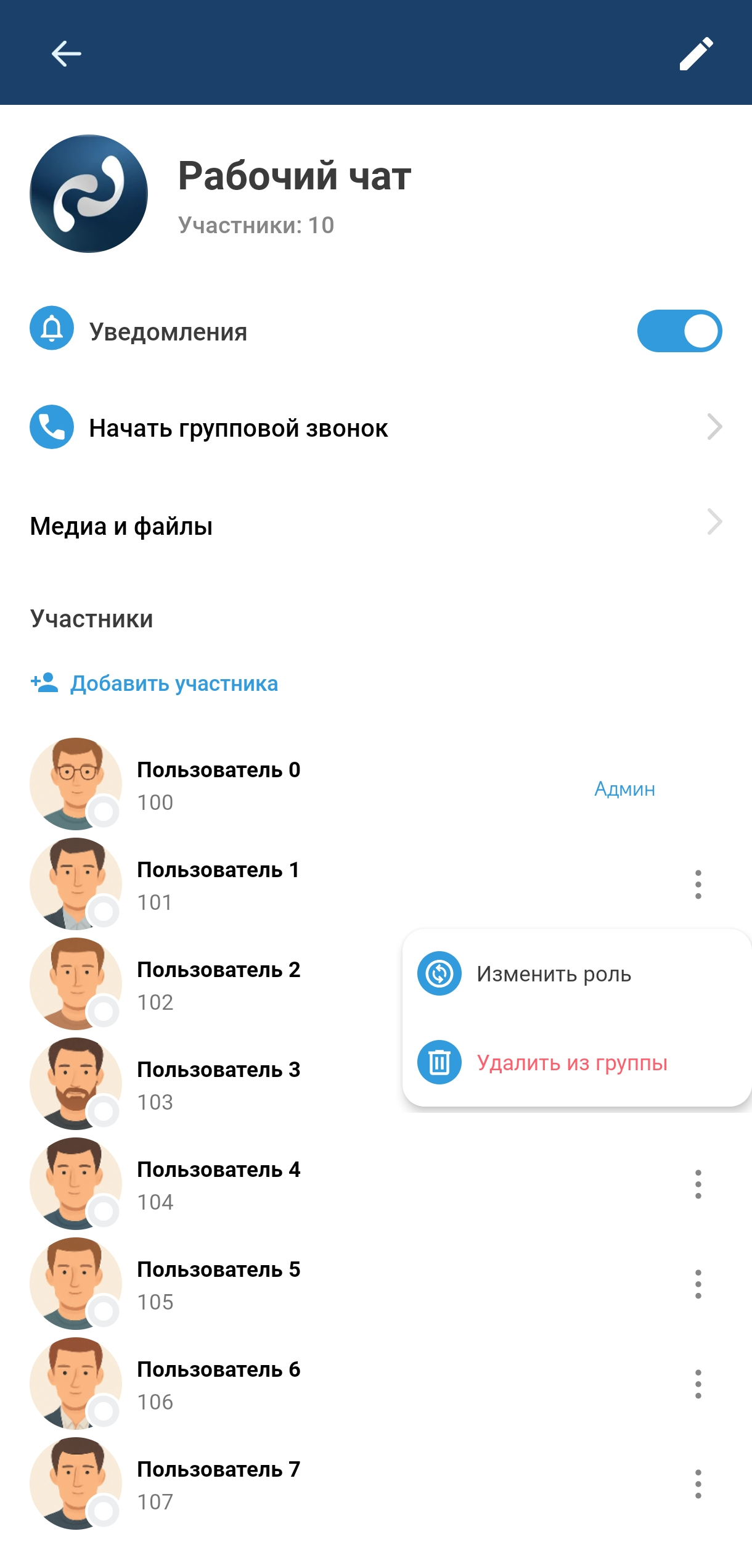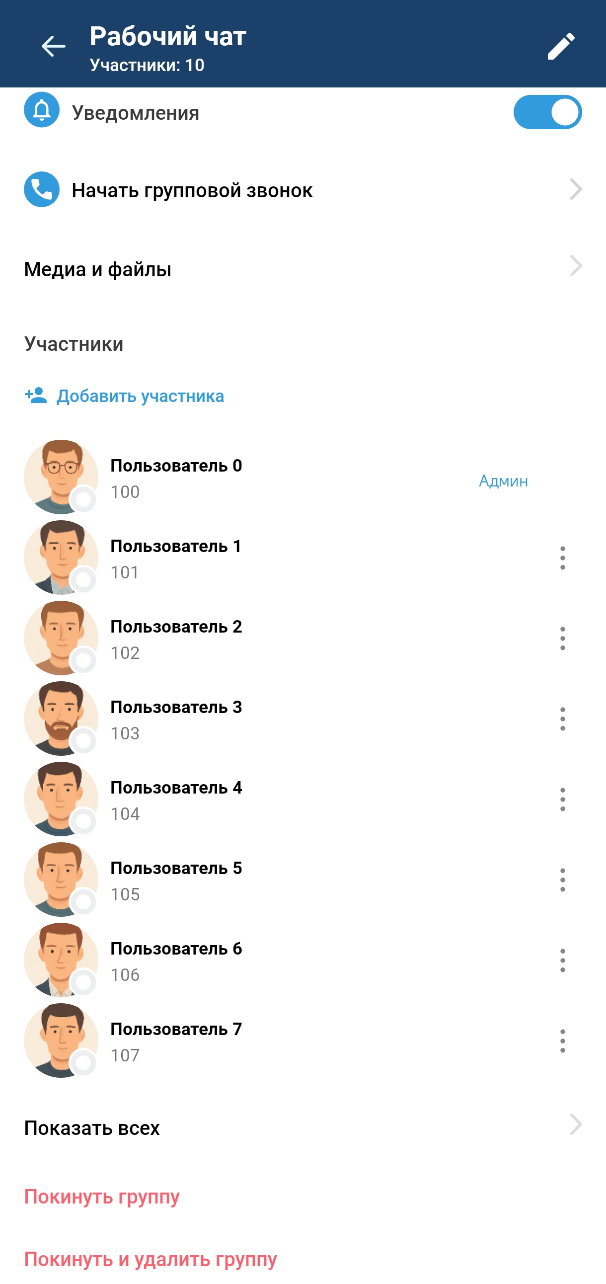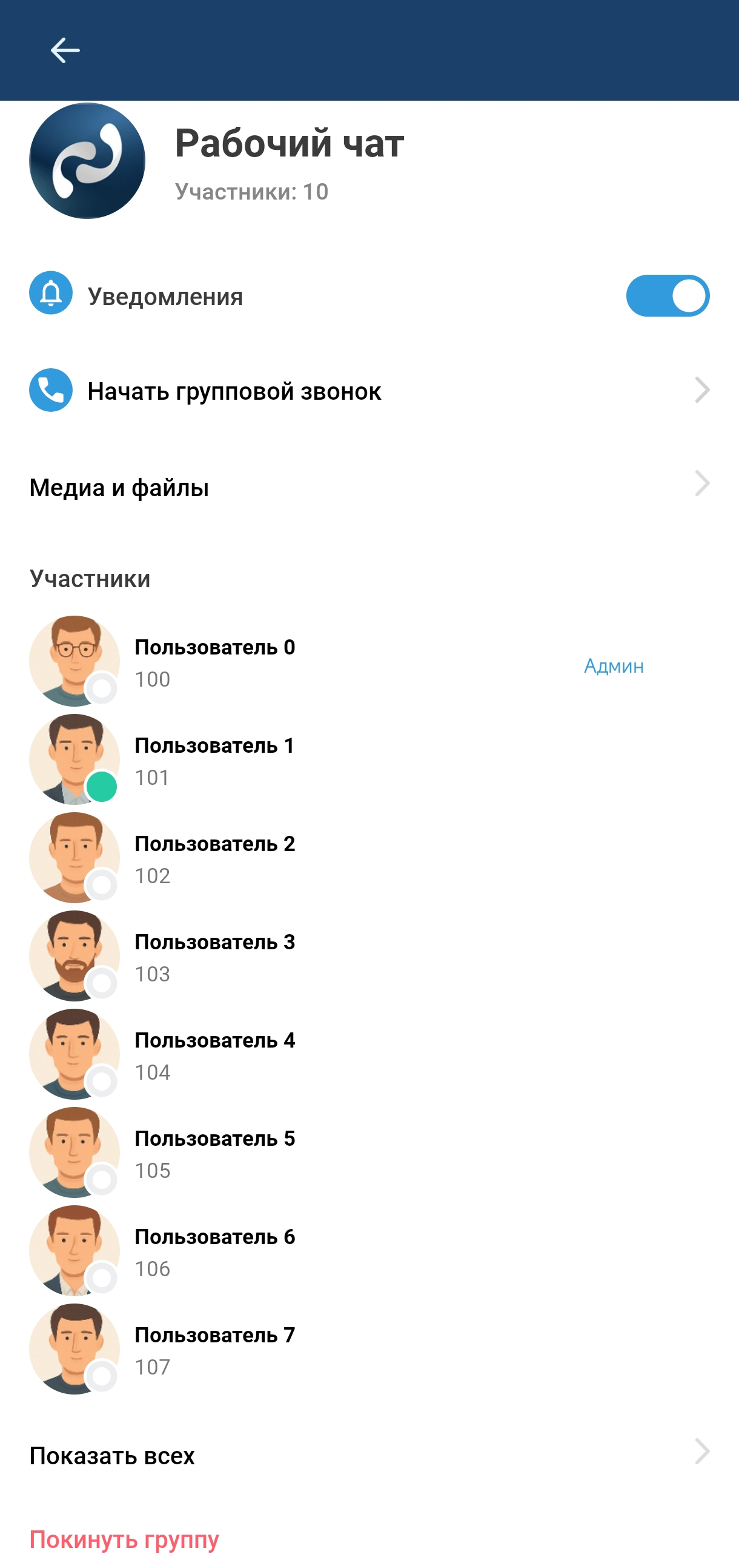 Интерфейс информации о групповом чате содержит: