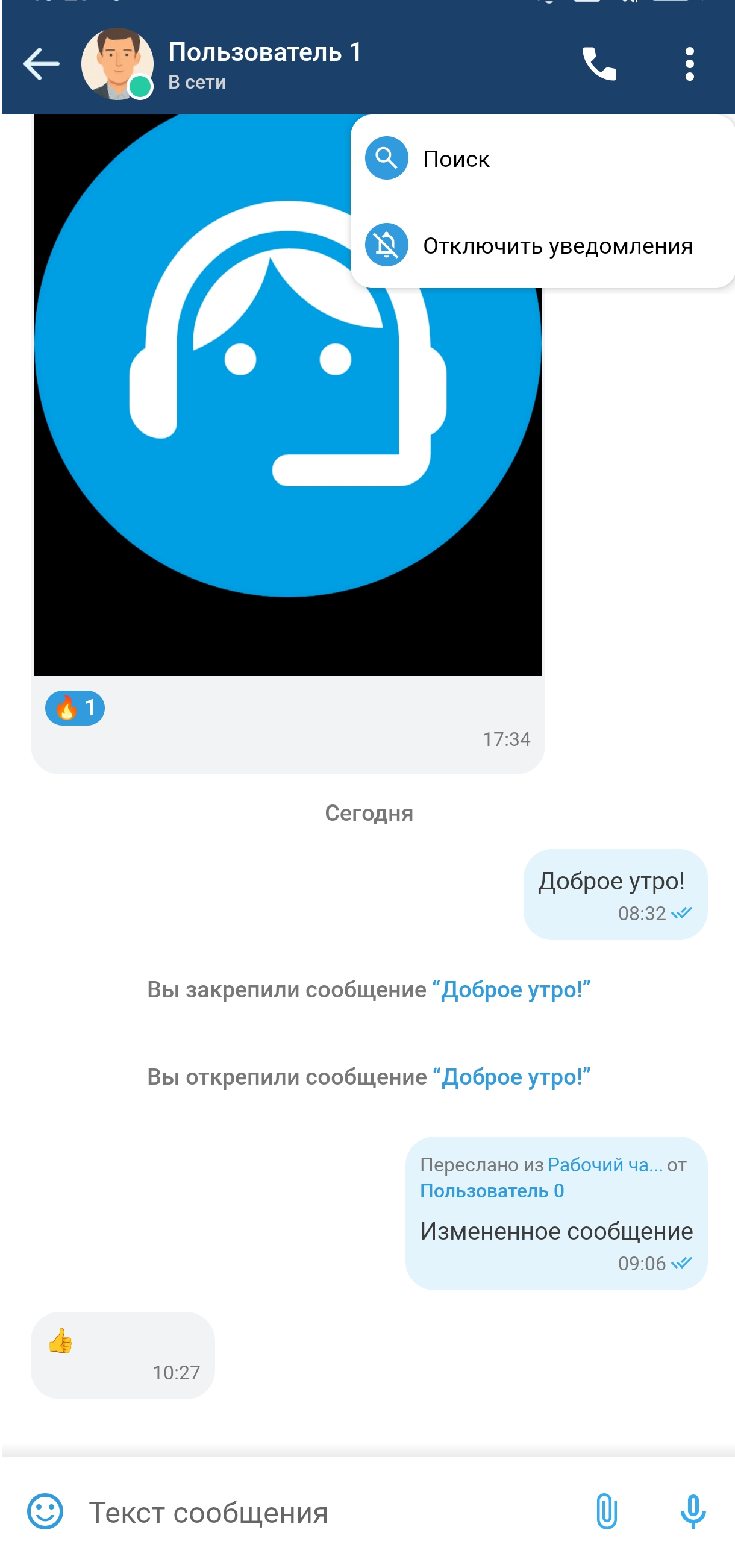 • кнопку вызова выпадающего меню (см. раздел «Интерфейс чата»);
