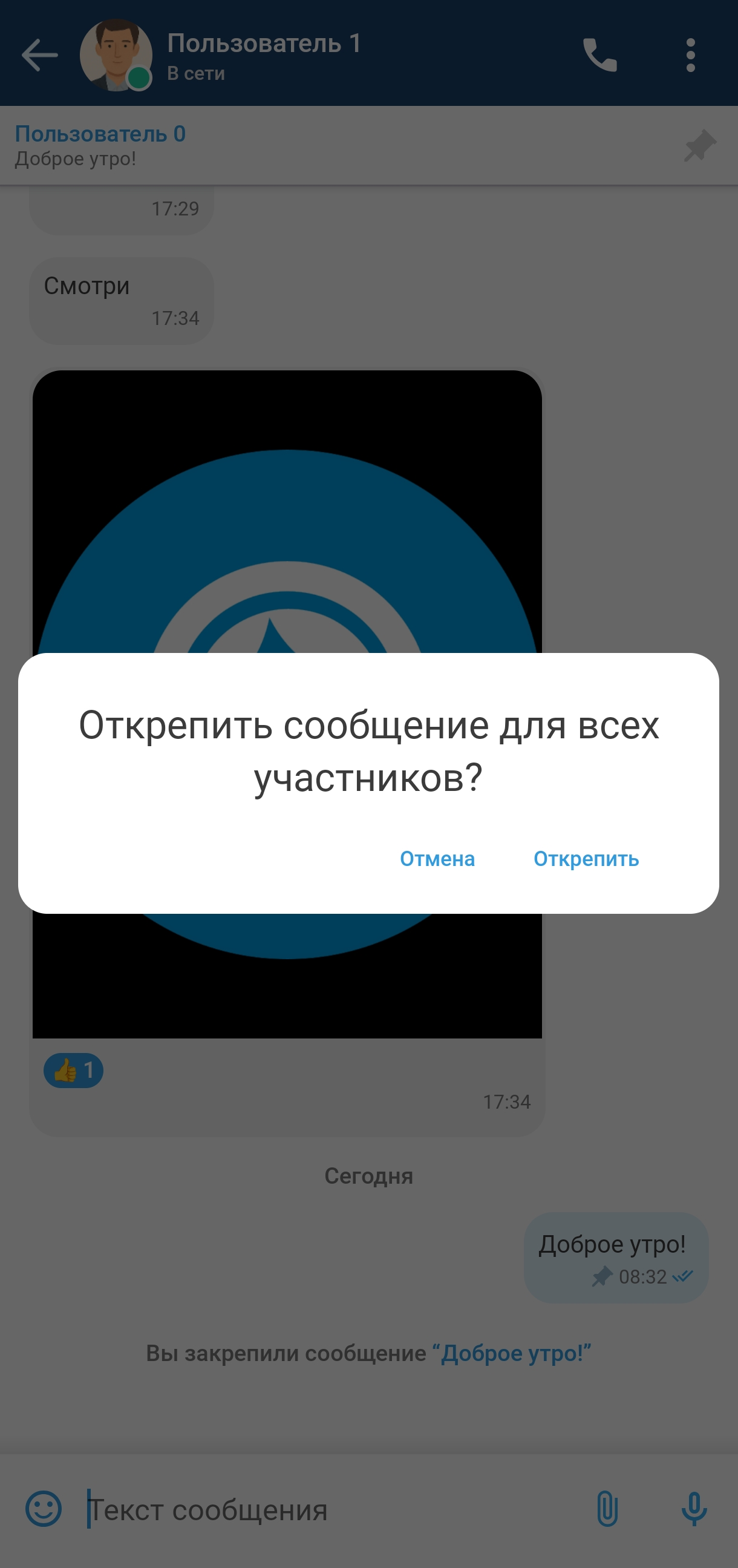 Интерфейс информации о чате