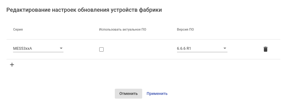 Для того чтобы не обновлять серию устройств, нажмите кнопку . Настройки для серии будут удалены.