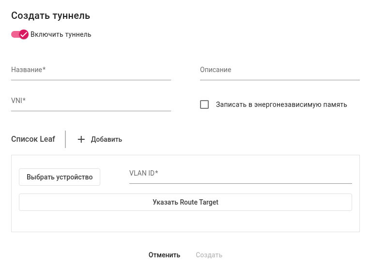 1. Включить туннель — переключатель, позволяющий изменить административный статус туннеля при создании (enable/disable);