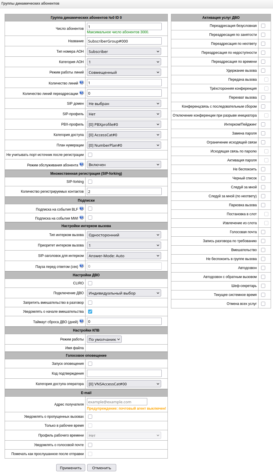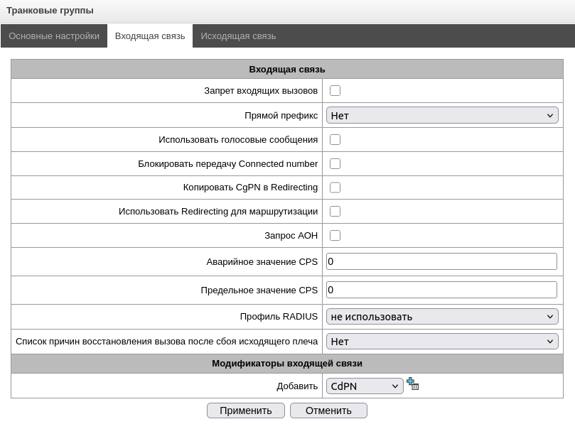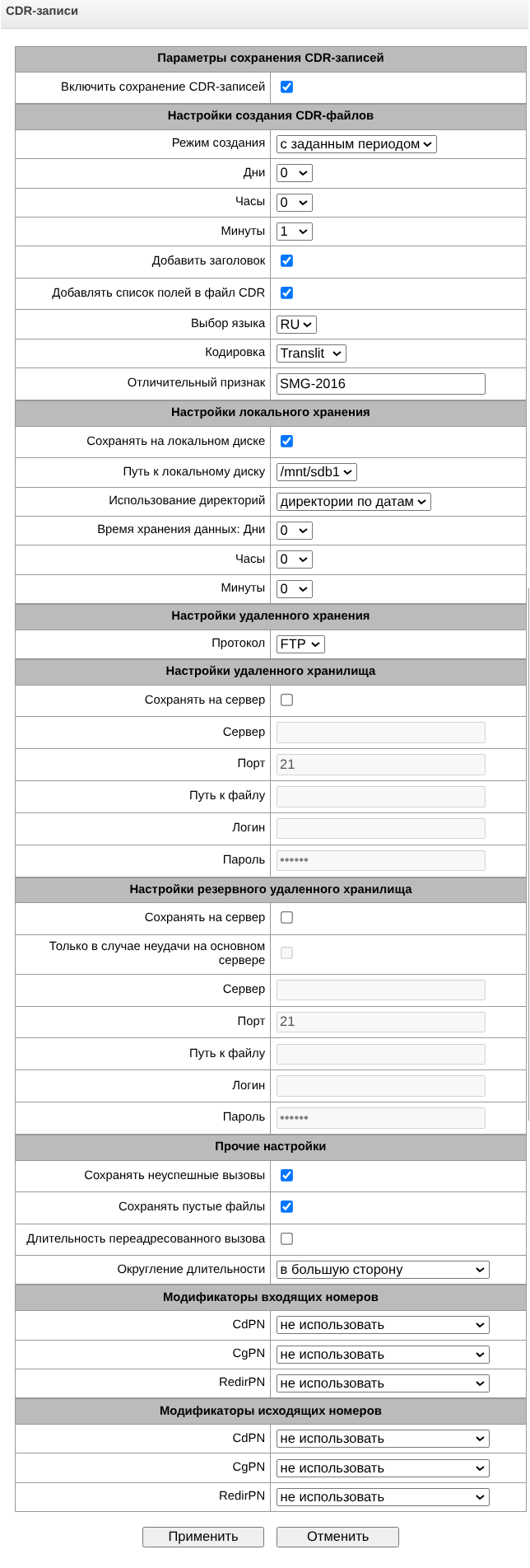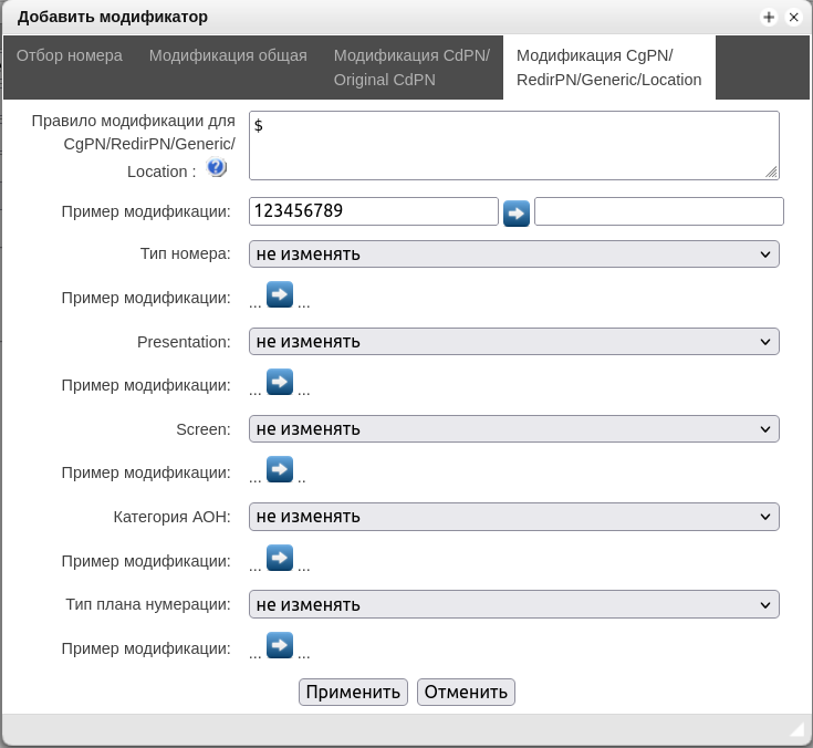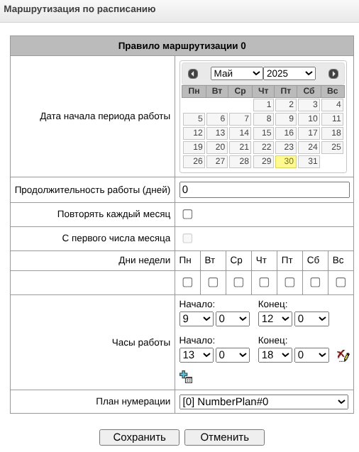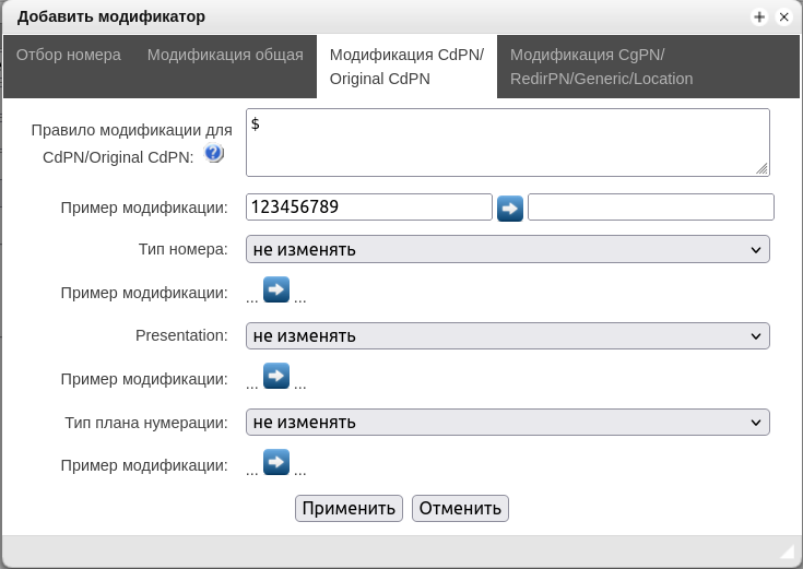 - Отложенное применение плана нумерации – при выставленном флаге SMG не будет применять изменения в плане нумерации до специального подтверждения. Установка этой опции помогает при работе с большими планами нумерации, позволяя избежать их длительной обработки после каждого изменения настроек;