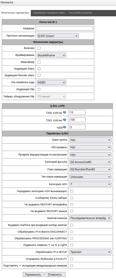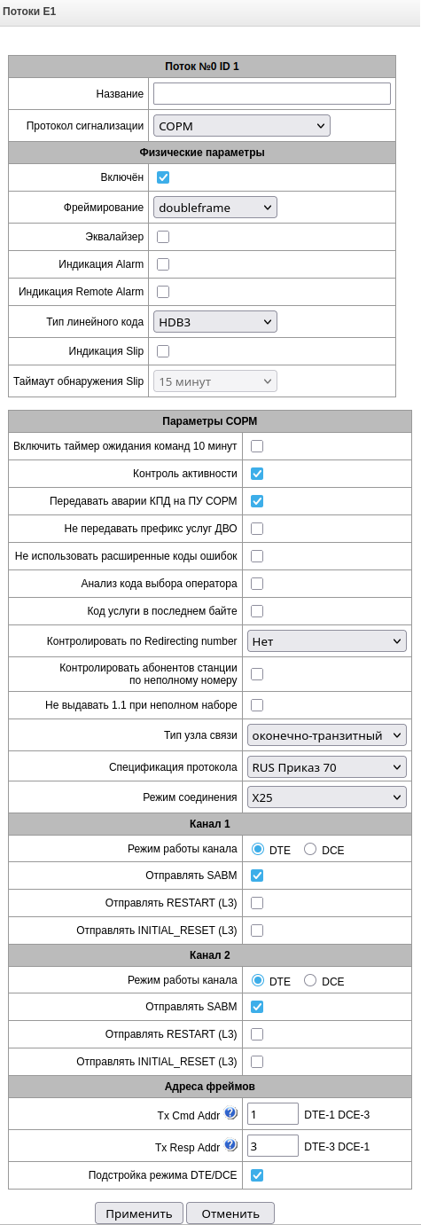 - Управление TDM (потоки Е1) – предоставляется возможность настройки потоков Е1;