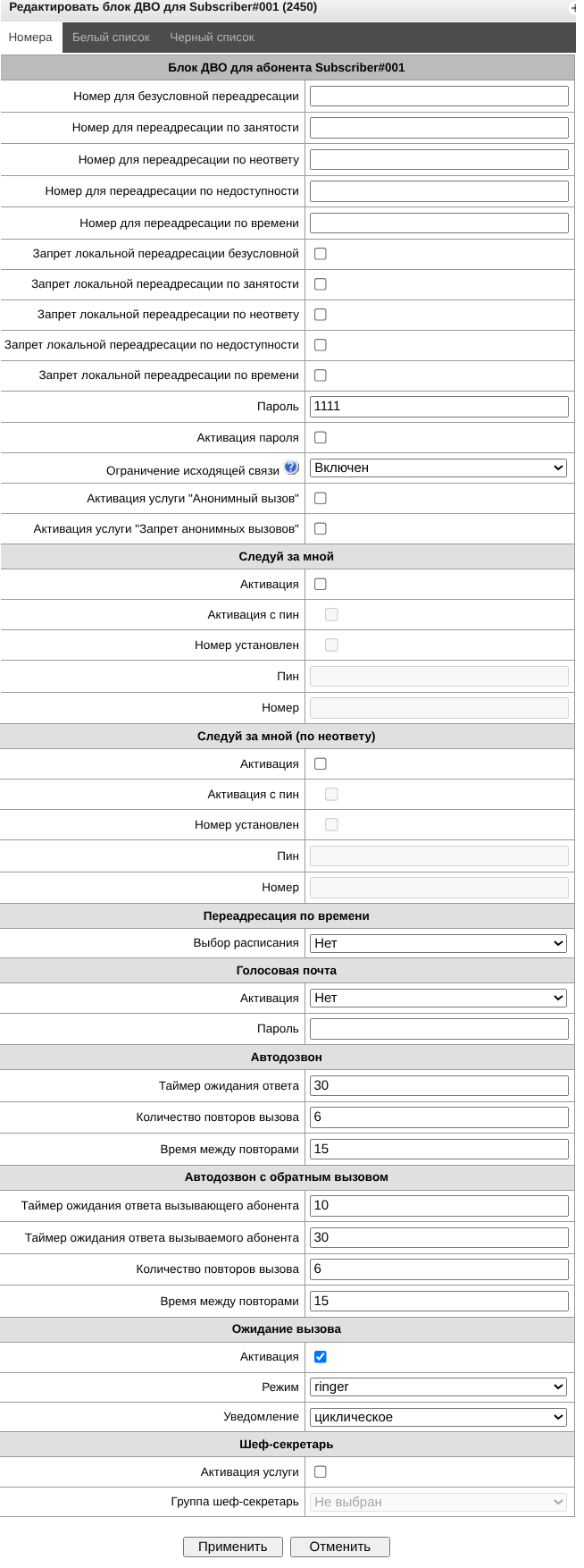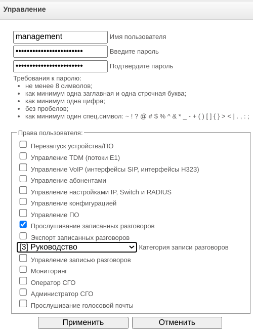- Управление записью разговоров – предоставляет доступ к настройке записи разговоров и доступа к ним;