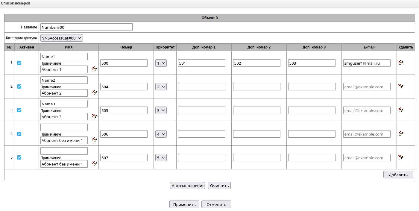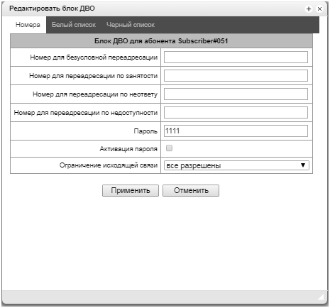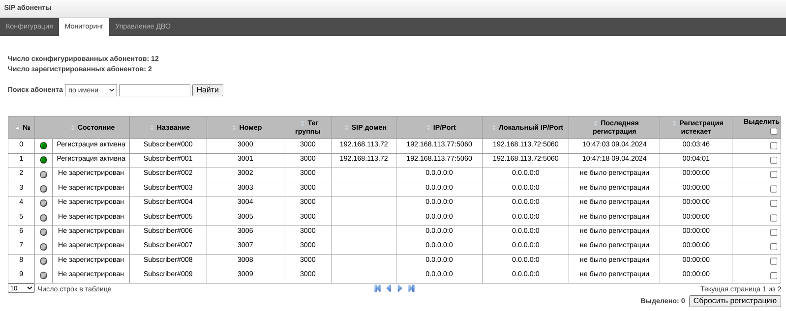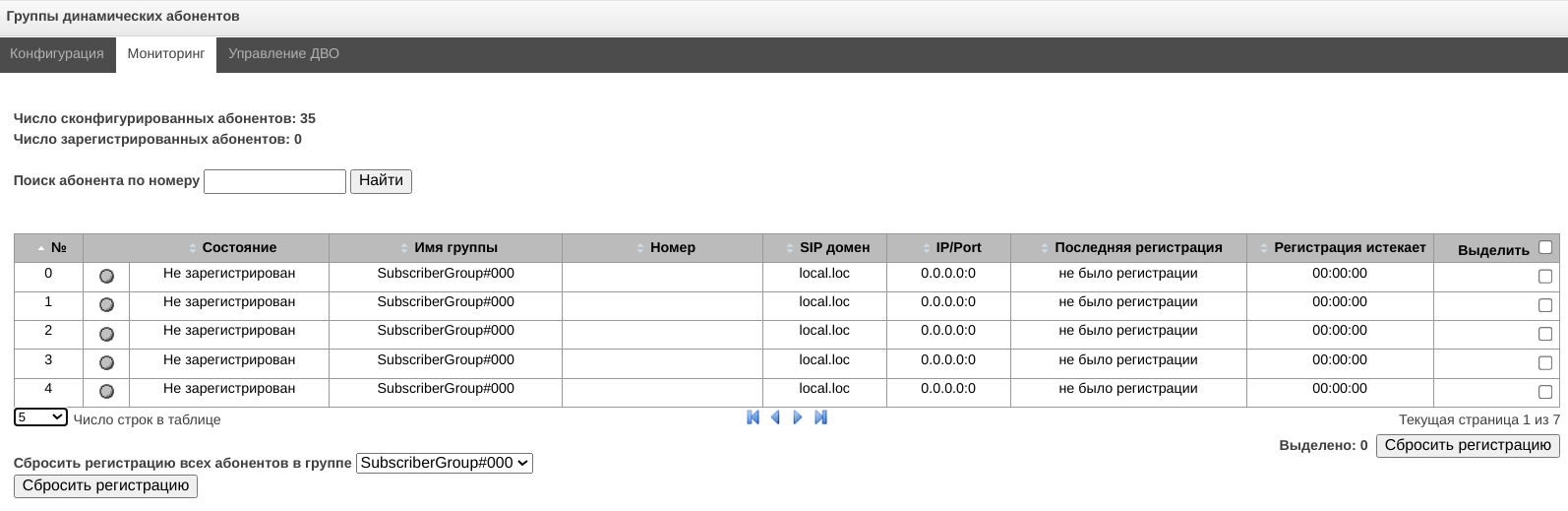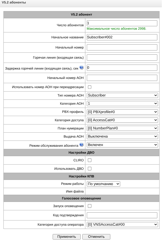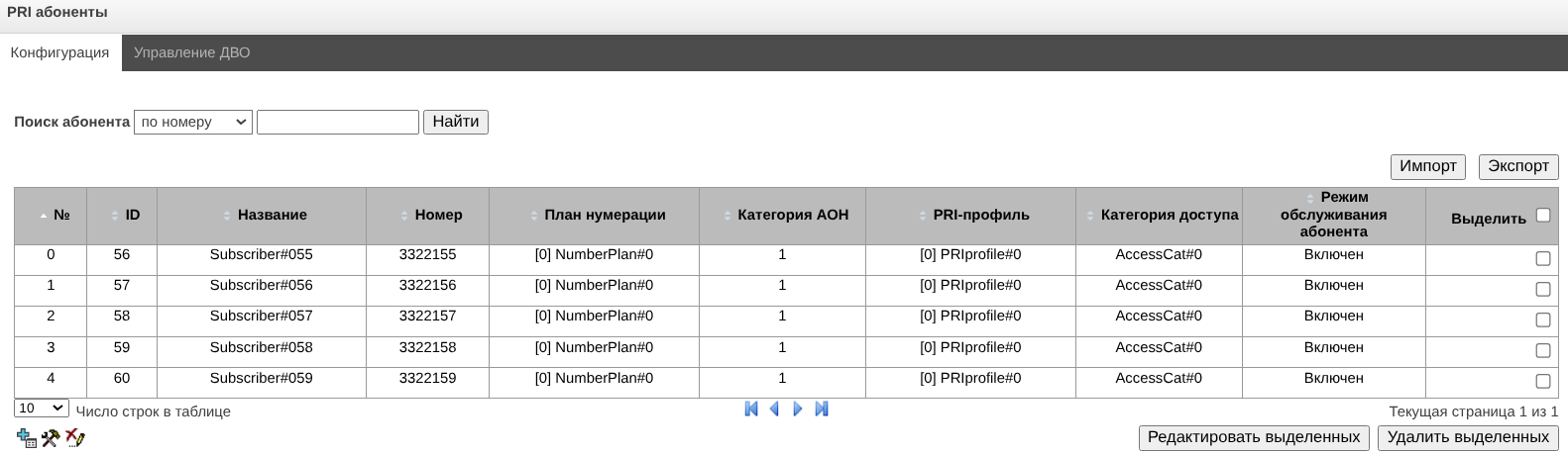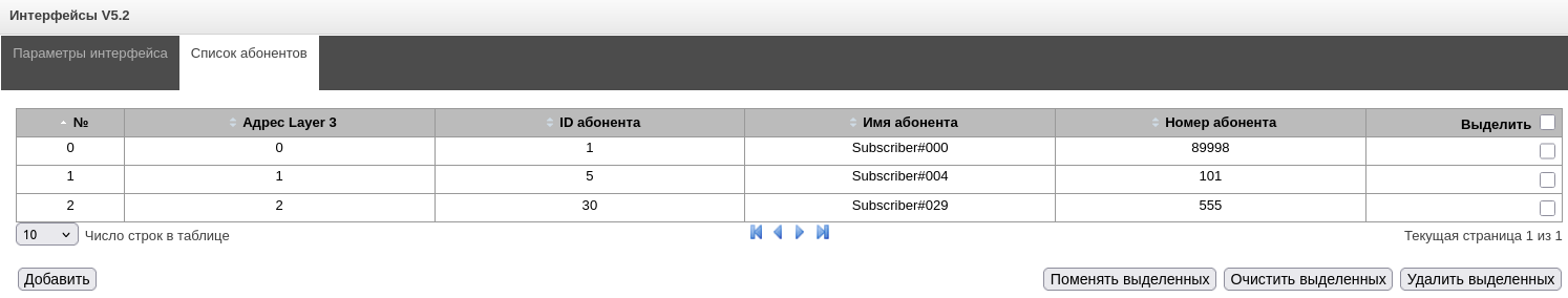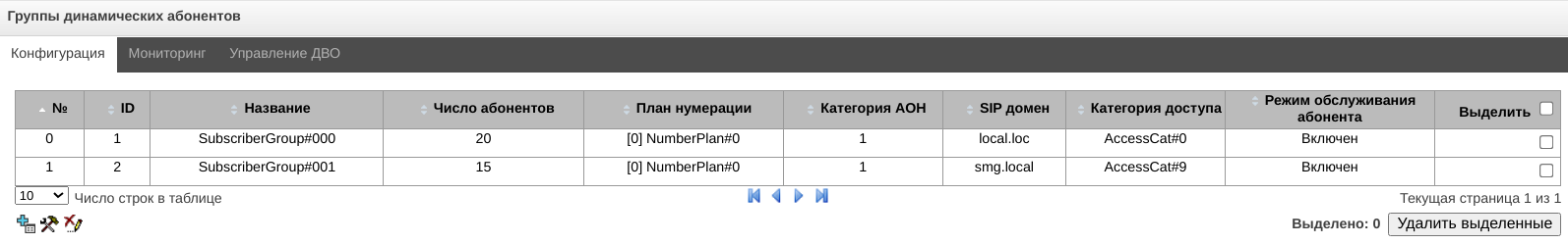 - Управление абонентами – предоставляется возможность настройки абонентов SMG;