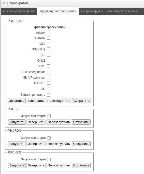 - Управление трассировками и syslog – предоставляет доступ к разделу «Трассировки».