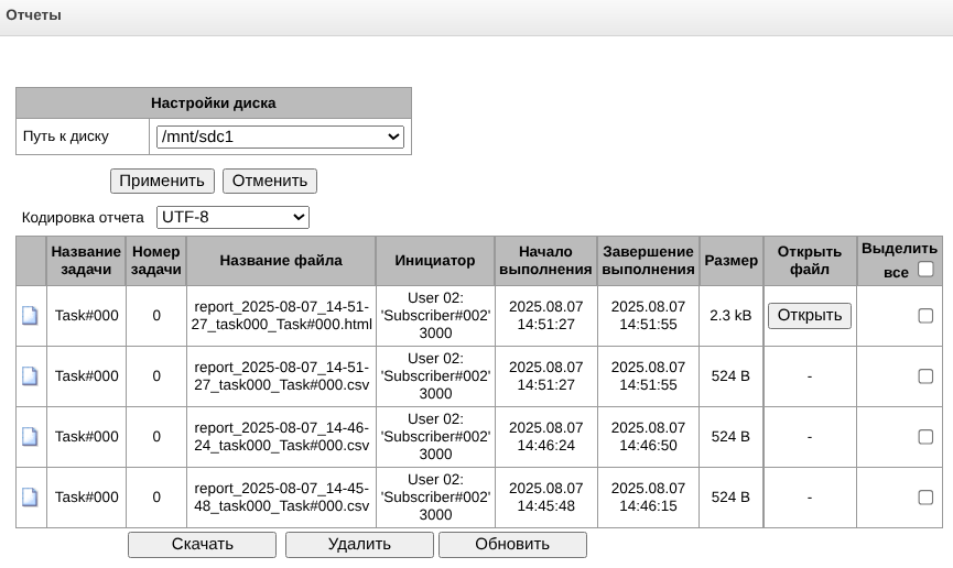 - Управление ПО – предоставляется возможность обновления ПО и лицензии устройства;
