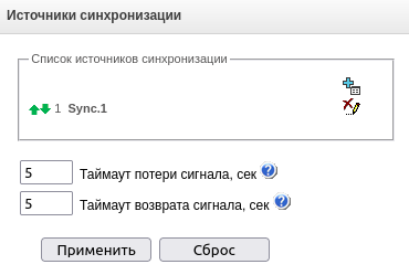 Синхронизация от менее приоритетного источника | Потеря основного источника синхронизации, текущий источник менее приоритетный |