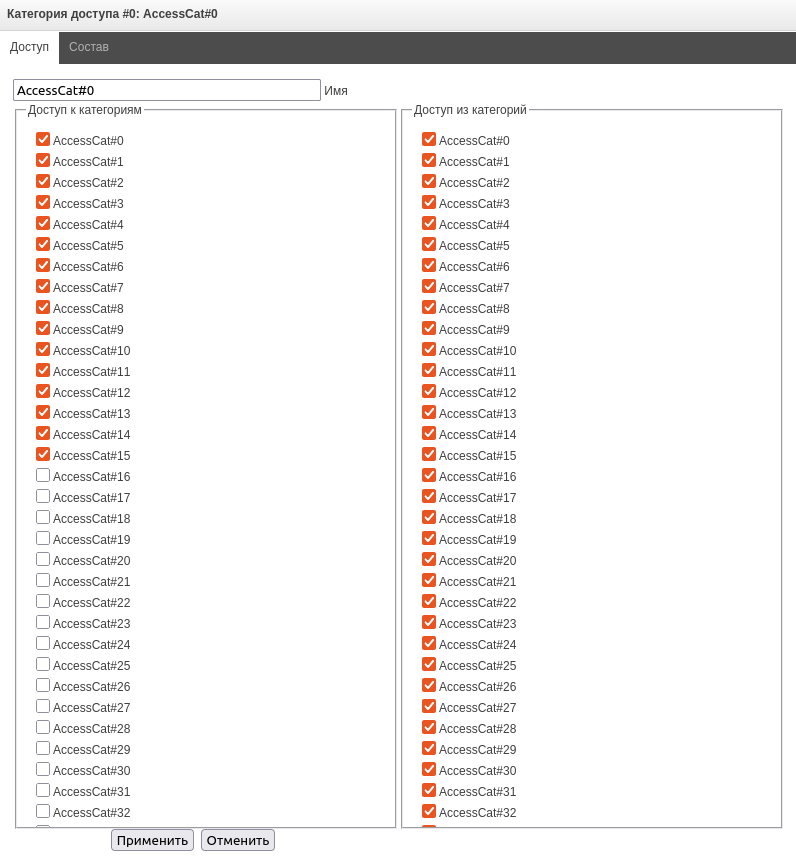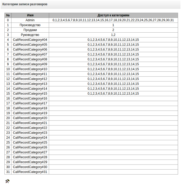 - Категория записи разговора – предоставляет доступ к категории, разрешающей/запрещающей доступ соответствующим записям разговоров;