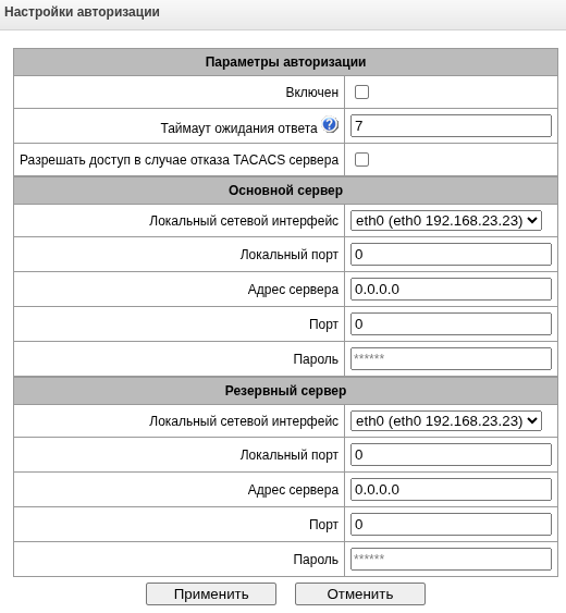 При использовании TACACS+ номер группы соответствует уровню привилегий, определяемому на стороне TACACS+.