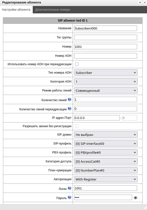- SMG-PBX – активация функционала регистрации SIP-абонентов;