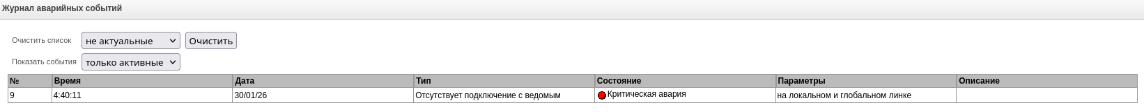 Сигнализация аварий | служит для отображения текущей приоритетной аварии, также является ссылкой для работы с журналом аварийных событий. |