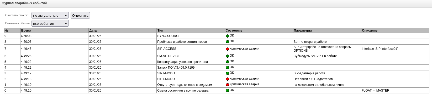 Нет связи с SIP-модулем | Авария программного модуля, отвечающего за работу VoIP |