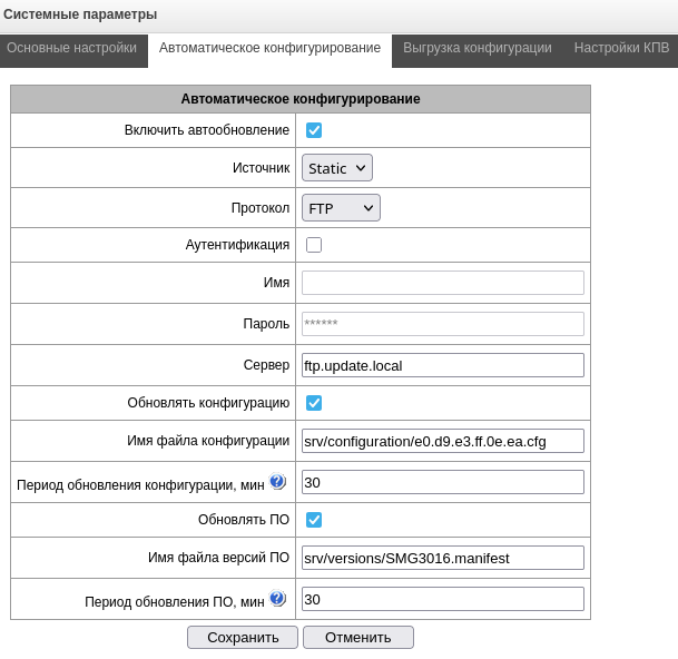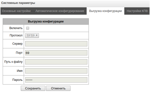 - Управление конфигурацией – предоставляется возможность загрузки/выгрузки файлов конфигурации;