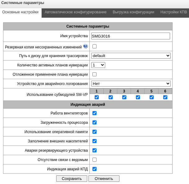 - Устройство для аварийного логирования – выбор накопителя для записи критических аварийных сообщений в энергонезависимую память. Данная опция может быть необходима при выяснении причин перезапуска или выхода из строя оборудования;
