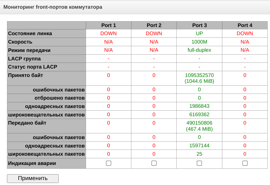 Для сохранения конфигурации необходимо нажать кнопку «Применить», а после использовать меню «Сервис» – «Сохранить конфигурацию во Flash».
