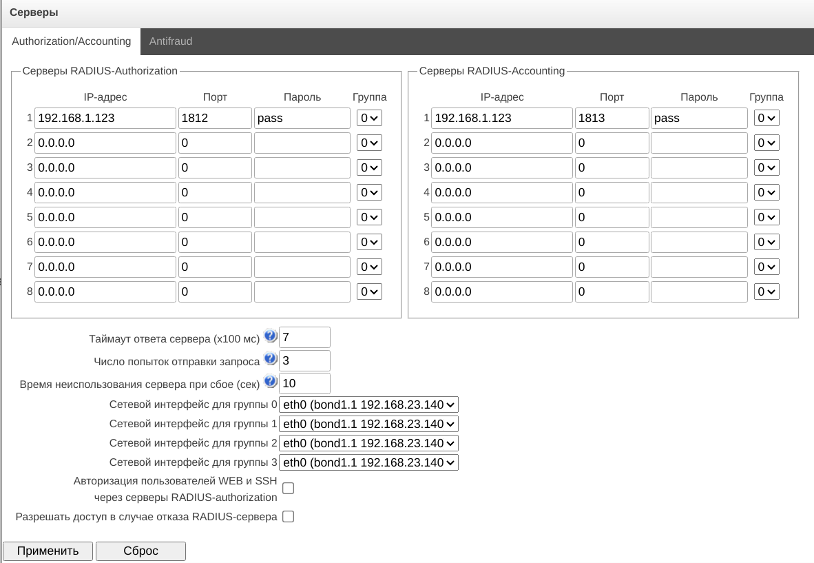 - SMG-ANTIFRAUD – активация функционала обмена с УВР ИС «Антифрод» по протоколу RADIUS;