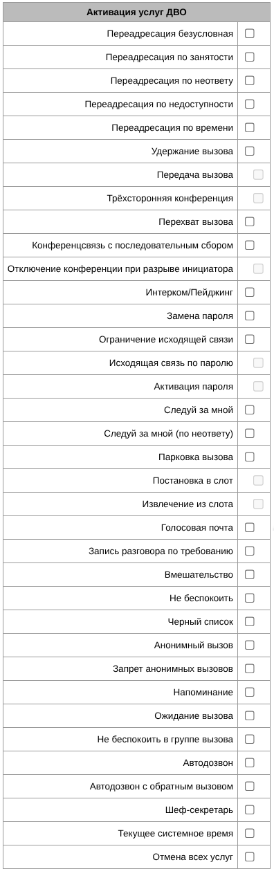 - SMG-MV-BLF – разблокировка лимита количества подписок BLF. Не поддерживается;