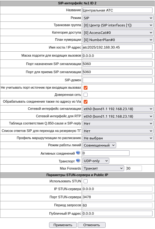 • Перейти в настройки интерфейсов SIP (раздел Маршрутизация — Интерфейсы SIP);
