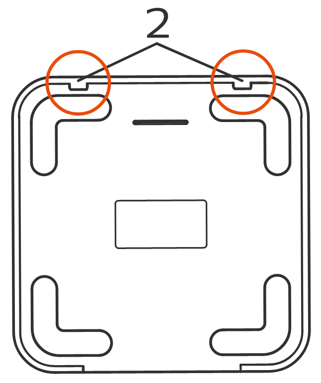 Выключатель можно установить на столе или закрепить на стену. Для этого используйте скотч или шурупы из комплекта поставки. С внутренней стороны задней крышки есть специальные отверстия для просверливания (1).