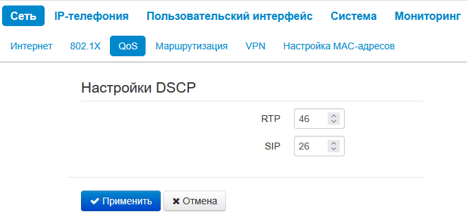 RTP — значение поля DSCP заголовка IP-пакета для голосового трафика;