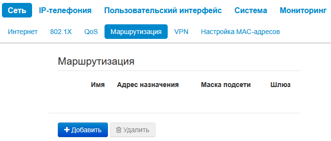 В подменю «Маршрутизация» настраиваются статические маршруты устройства.