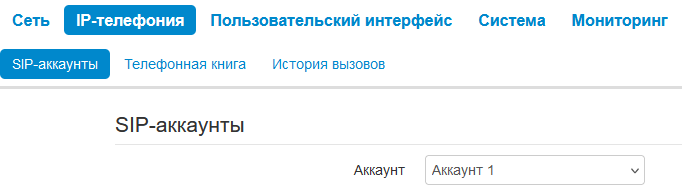 В меню «IP-телефония» выполняются настройки VoIP (Voice over IP): настройка протокола SIP, конфигурация аккаунтов, установка кодеков и ДВО;