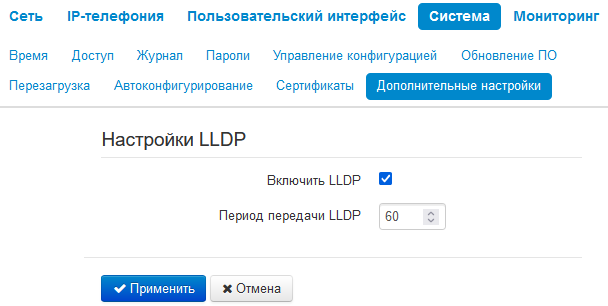 Включить LLDP — при установленном флаге использовать протокол LLDP;