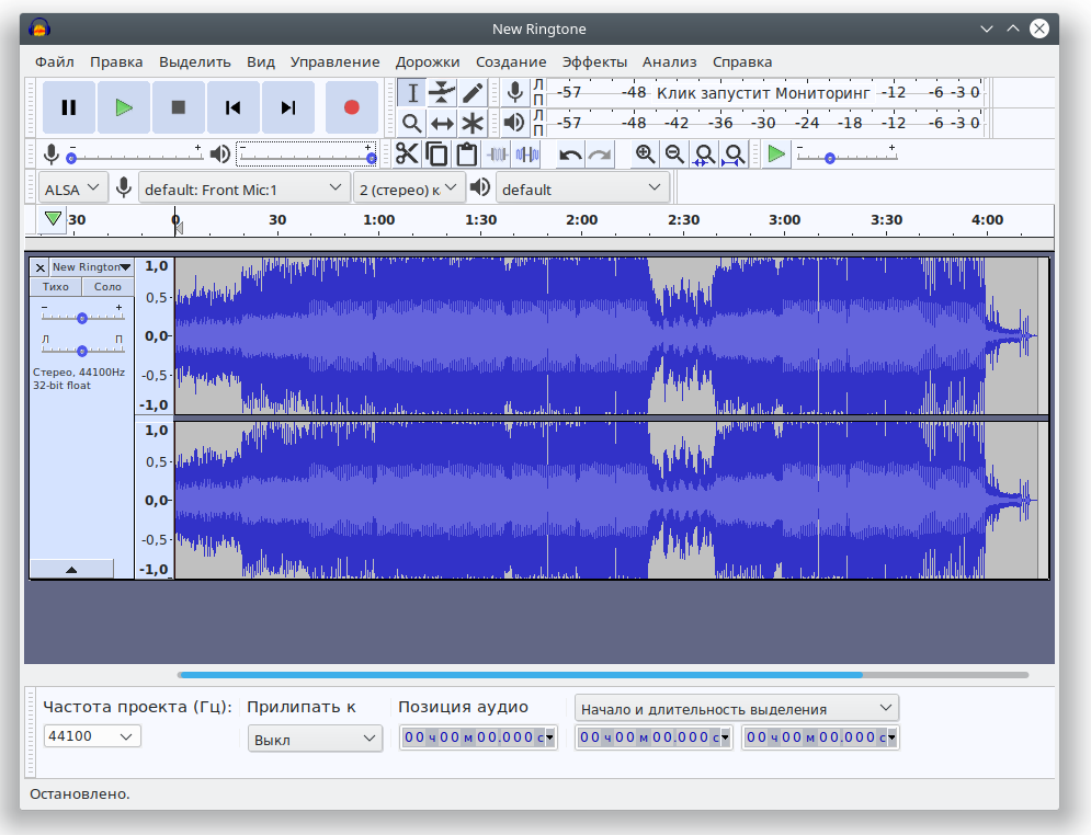 Подготовка файла мелодии вызова в аудиоредакторе «Audacity»
