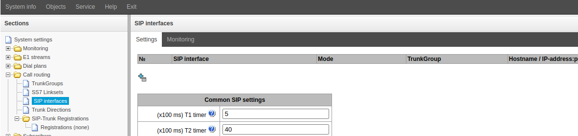 1. Go to the side menu "Call routing" → "SIP interfaces".